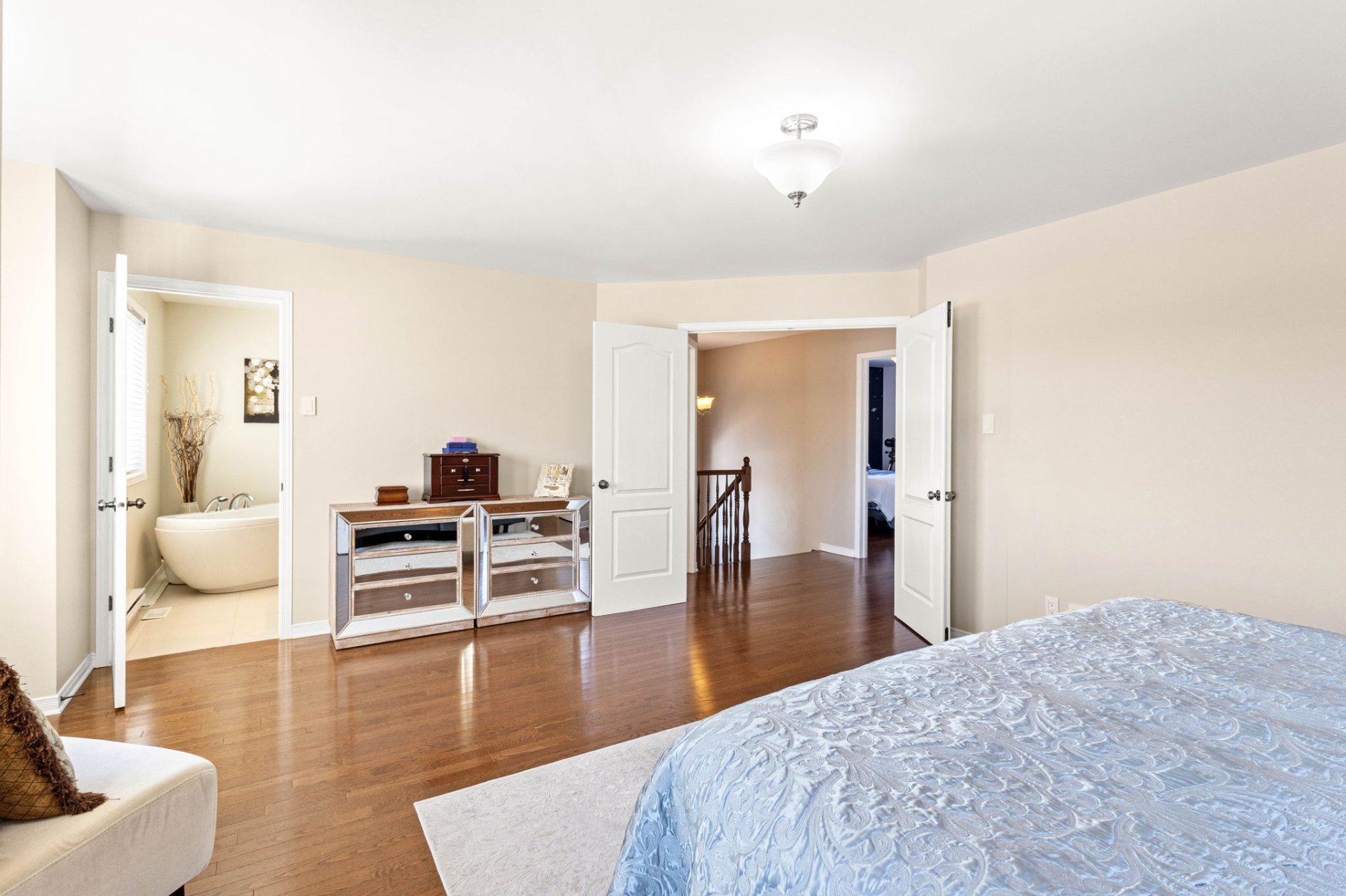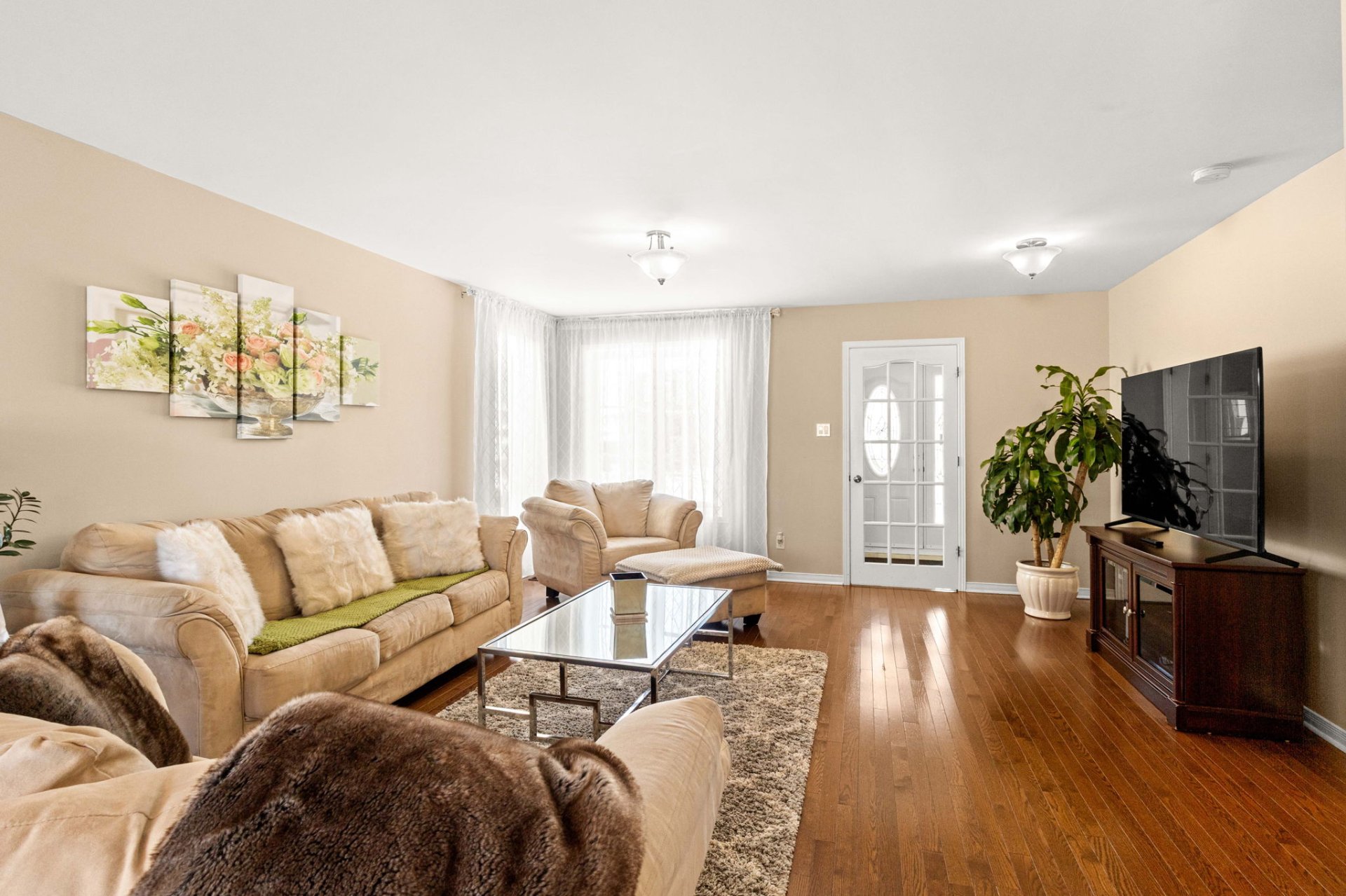 - Planchers de bois franc en merisier au rez-de-chaussée et